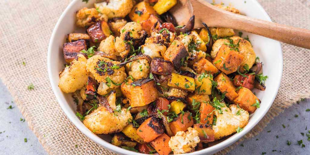 1. Preheat oven to 450°F. Toss vegetables with oil in large bowl. Sprinkle with Berbere Seasoning* and salt; toss to coat. Arrange vegetables in single layer on large foil-lined shallow baking pan sprayed with no-stick cooking spray.
