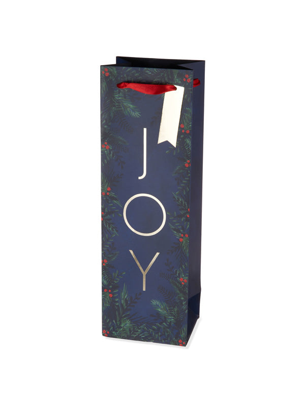 Spread the joy near and far this season! This gift bag features red ribbon handles, foil accents and a gift tag.