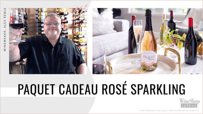 Our Paquet Cadeau (pronounced pah-kay kah-dough) California Rosé Sparkling Wine has a beautiful pink hue. The nose displays white flower fragrances like acacia and orange blossom. Later on, notes of raspberry, watermelon and hay complete this expressive and aromatic nose.